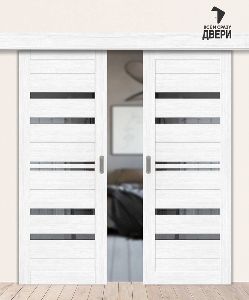 Межкомнатная двойная дверь-купе с экошпоном Браво-30 Snow Melinga/Mirox Grey 900+900х2000 мм